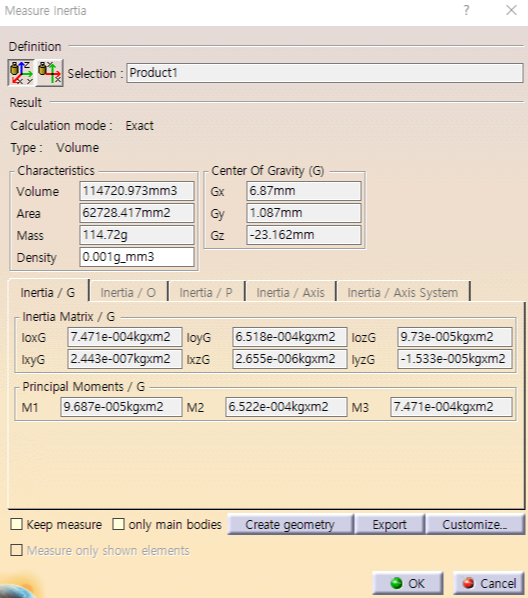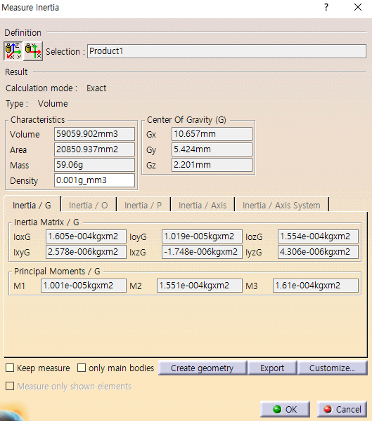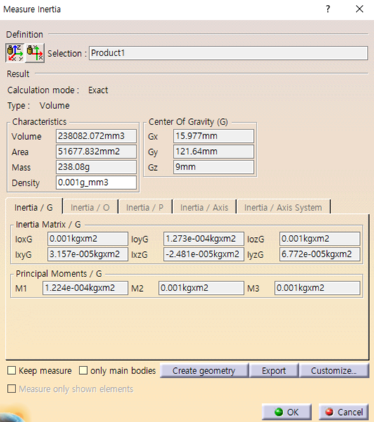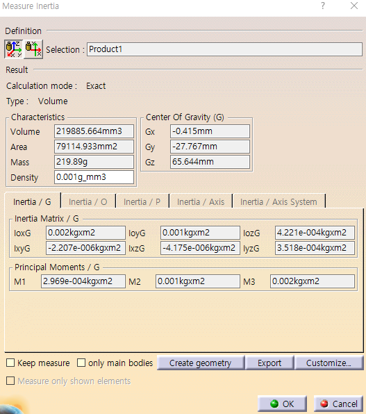 1. 70.84mm 2. 무게중심 x = -0.42mm y = -27.77mm z = 65.64mm |