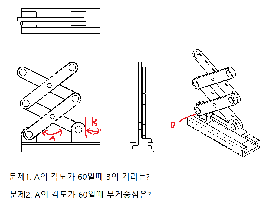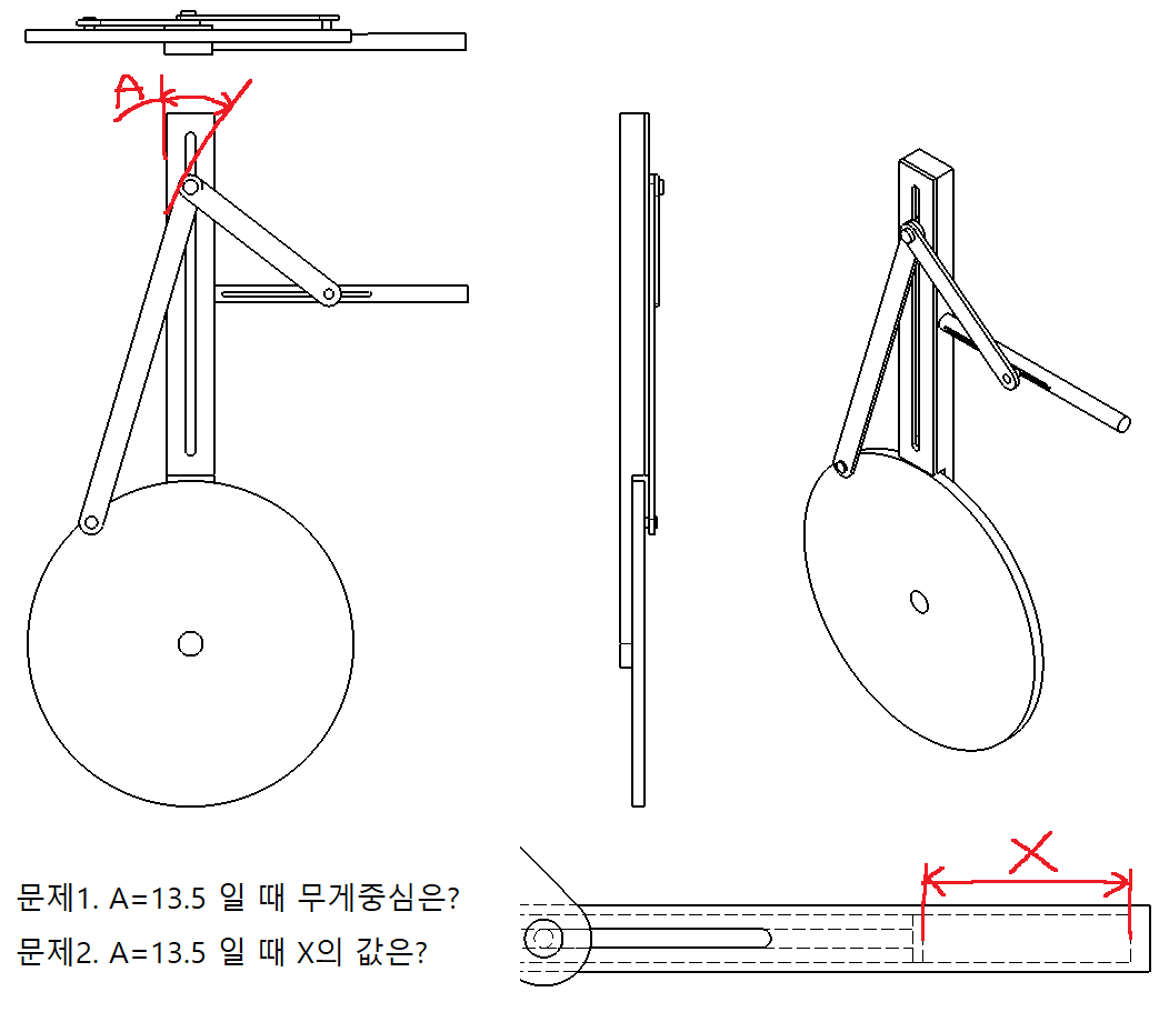 1. 55.62mm 2. 94.07deg 3. 무게중심 x = 15.97mm y = 121.64mm z = 9mm |